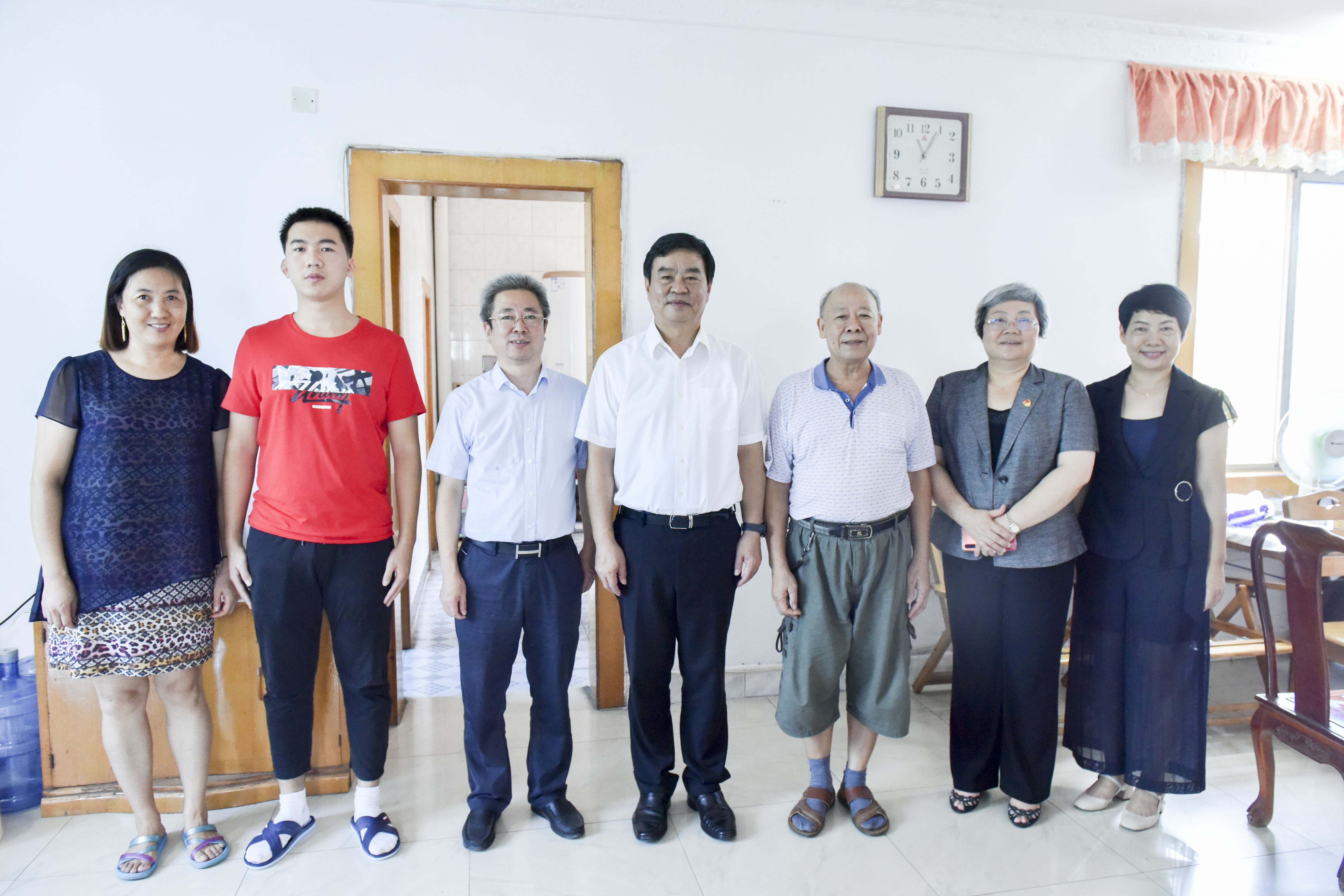 本网讯 8月16日,民革中央副主席、民革省委主委、省人民政府副省长何报翔率队走访慰问我校民革党员张造福。民革湖南省委专职副主委雷震宇,永州市委常委、统战部长石艳萍,永州市副市长李旦梅,校党委书记、校长曾宝成,校党委副书记唐艳明陪同慰问。