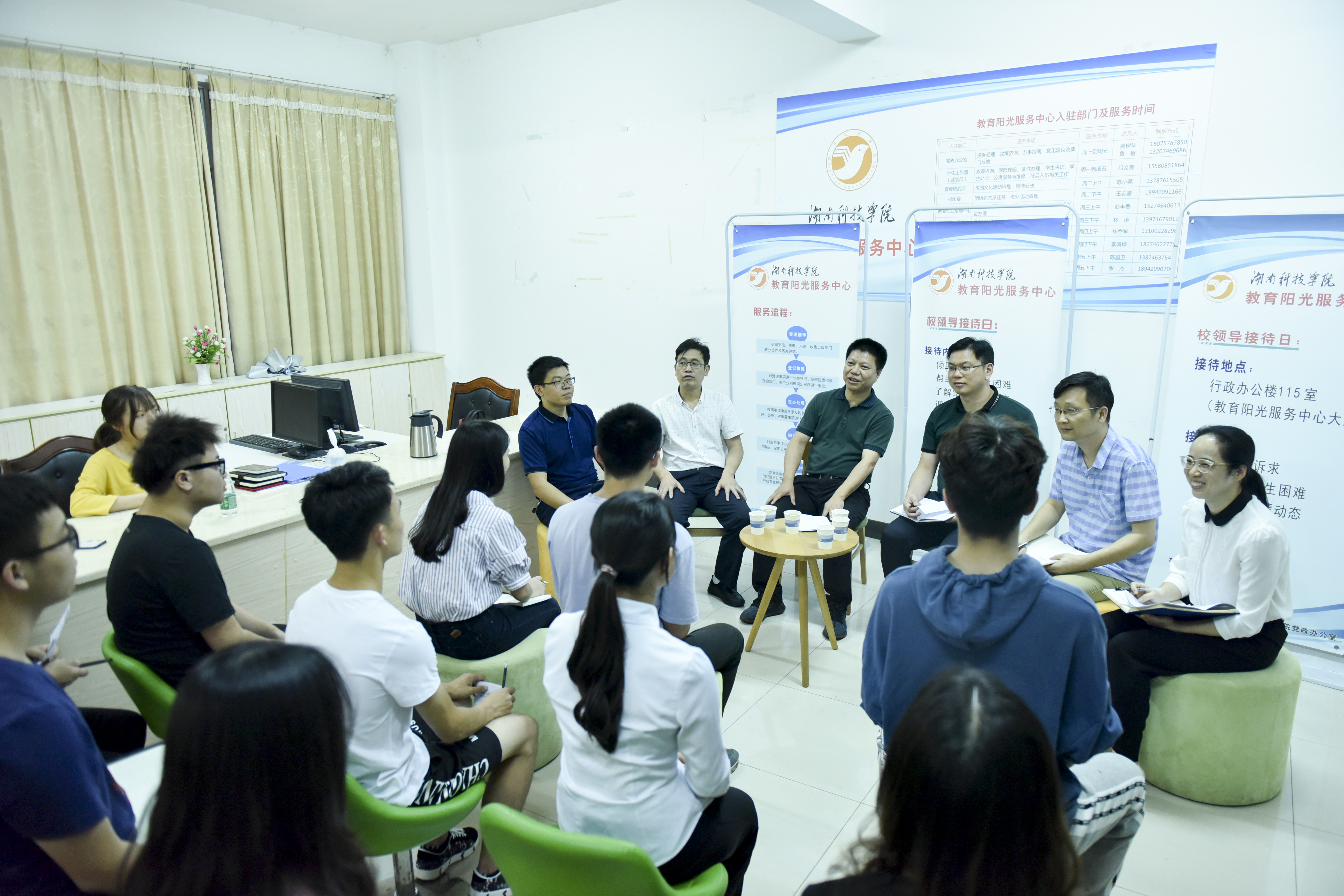 本网讯 6月24日晚,学校在教育阳光服务中心举行第31期校领导接待日活动。副校长程智开,党政办、学工部、基建处、图书馆、后勤服务总公司等职能部门负责人与来自各教学学院的10名学生代表进行面对面交流,畅谈学校的后勤服务工作。