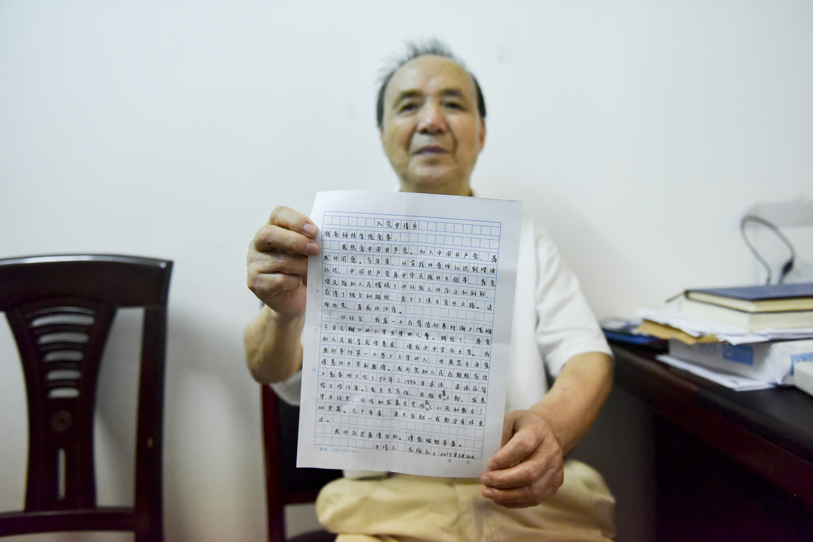 龙福元曾是我该校历史学概论、马克思主义哲学原理等课程的专任教师,从教50年的他一直有一个夙愿就是加入中国共产党。1987年,还在教学任上的龙福元,曾经向党组织递交过入党申请书,但由于种种原因未获组织批准。而他没有放弃,一如既往地兢兢业业工作,退休后还被系里返聘11年。