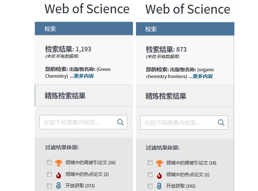 刘开建博士2018年7月发表在《Green Chemistry》(IF= 8.586)期刊、题名为“Bis(methoxypropyl) ether-promoted oxidation of aromatic alcohols into aromatic carboxylic acids and aromatic ketones with O2 under metal- and base-free conditions”的论文同时入选本期化学学科ESI热点论文和高被引论文(图2)。数据显示2017-2018年中ESI收录《Green Chemistry》的1193篇论文中,有26篇论文入选ESI高被引论文,2篇论文入选ESI热点论文(图3)。