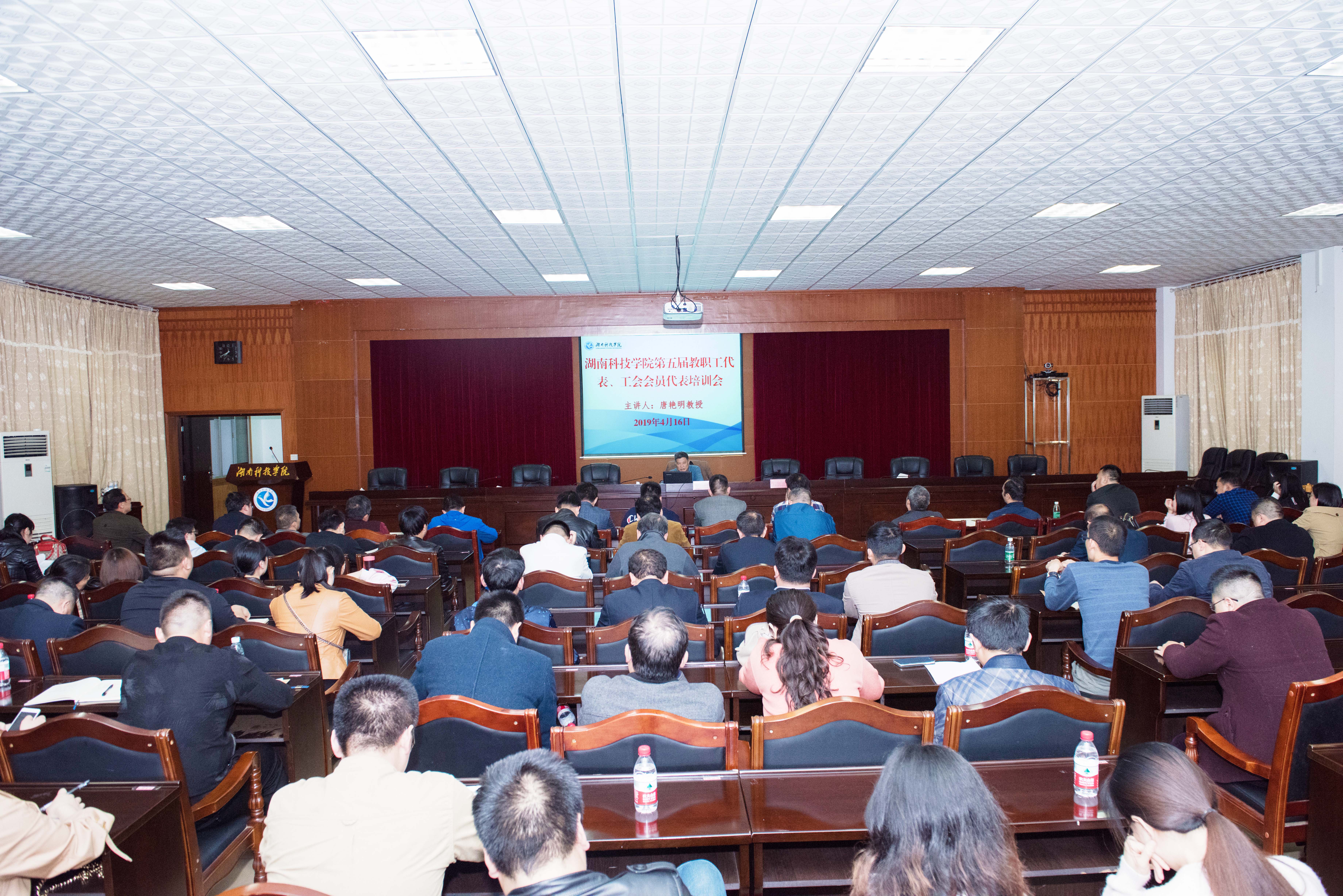 本网讯 4月16日晚,党委副书记、工会主席唐艳明以“聚焦学校发展大局 认真履行代表职责 努力提高提案质量”为题,为第五届教代会代表作提案工作培训。工会常务副主席石循忠主持。