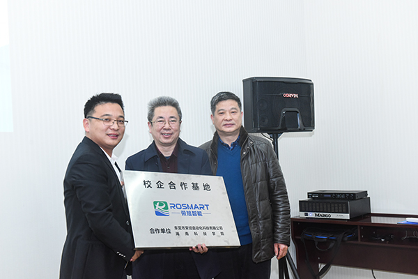 曾宝成在仪式上致辞。他说,当今时代是高新科技迅速发展的时代,未来社会是人工智能大兴盛行的社会,我校与荣旭自动化科技有限公司共建“‘人工智能与光学自动化技术’荣旭创新实验室”,并正式挂牌“校企合作基地”,为学校转型发展和人才培养搭建了新的平台,标志着学校校企合作办学和实验室工作迈向了新台阶,将进一步提高学校教育教学工作水平和人才培养质量,为地方经济发展提供更加坚实、可靠、有效的技术和智力支持。学校将以此次实验室的建立和校企合作基地挂牌为契机,进一步转变发展模式,进一步提升学校的办学水平和人才培养质量,推动学校内涵式发展,为服务经济社会发展做出更大贡献。