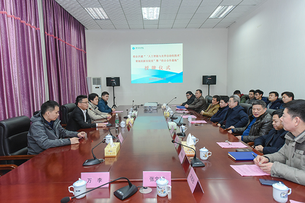 本网讯 3月5日,学校举行校企共建“‘人工智能与光学自动化技术’荣旭创新实验室”暨“校企合作基地”授牌仪式。东莞市荣旭自动化科技有限公司董事长李海荣、技术总监张晶,校党委书记、校长曾宝成,党委副书记唐艳明,副校长李常健,相关职能部门负责人和教学学院教师一同参加授牌仪式,仪式由李常健主持。