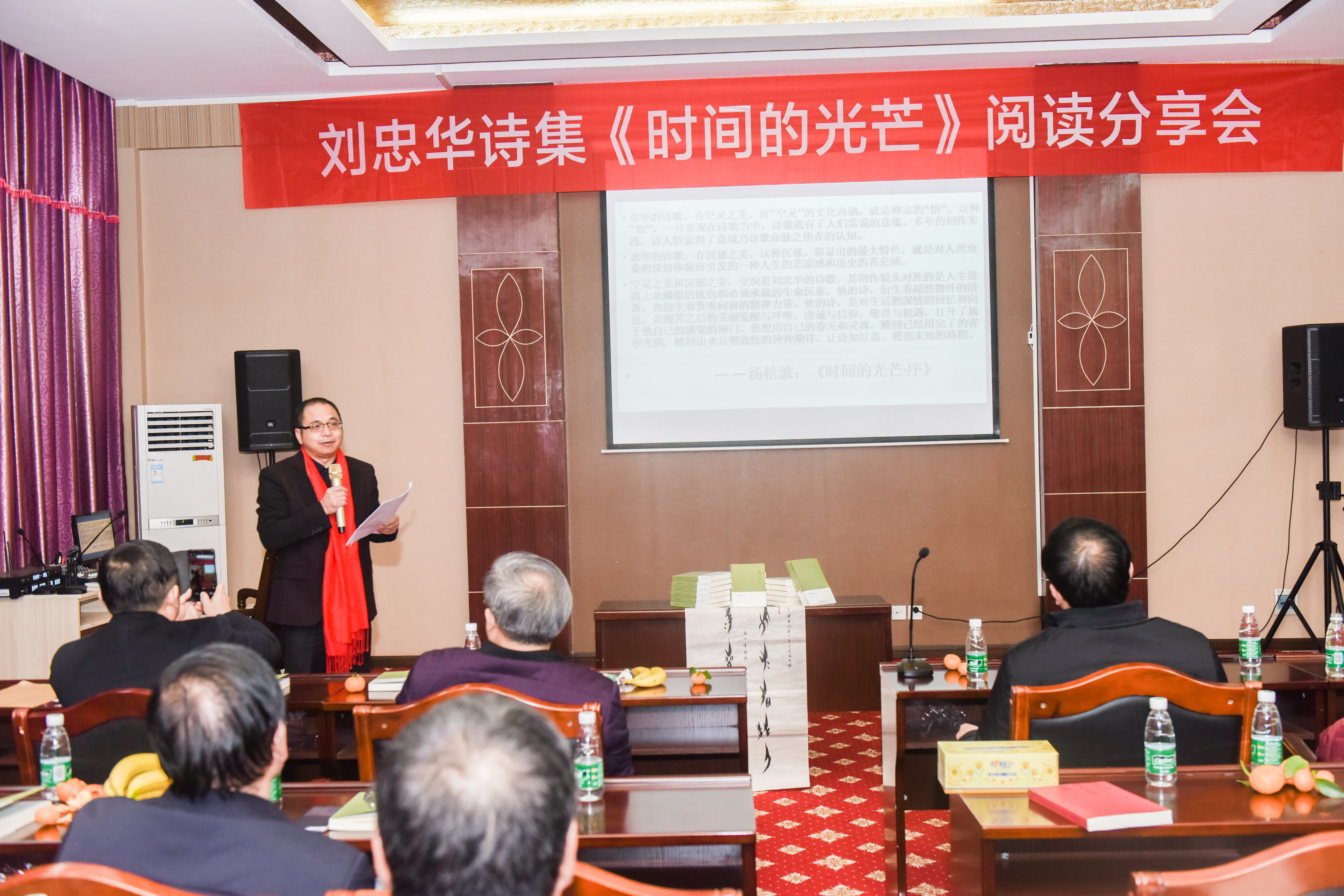 12月21日下午,永州本土实力派诗人、我校教师刘忠华诗集《时间的光芒》阅读分享会在校举行。部分师生,省诗歌学会和永州本土的诗人、作家60余人参加了本次活动。