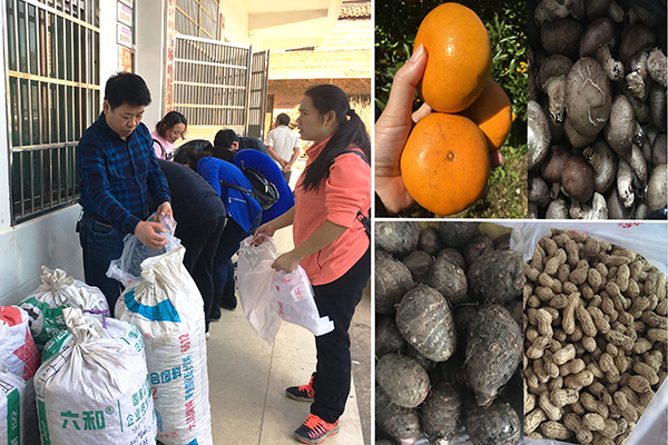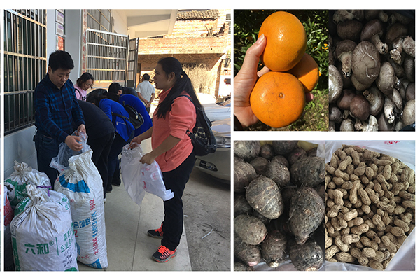下午,“以购代捐”扶贫活动在村集体香菇种植基地和村委会开展。学校扶贫队协助村民组织土鸡、香菇、玫瑰香柑等货源,大家热情有序购买、分装,并为那些有课没能到现场的教师们代购,共购买农产品3300余元。大家纷纷表示,“以购代捐”活动既帮助村民解决了农产品销路难题,又为助力村民产业脱贫致富贡献了力量。