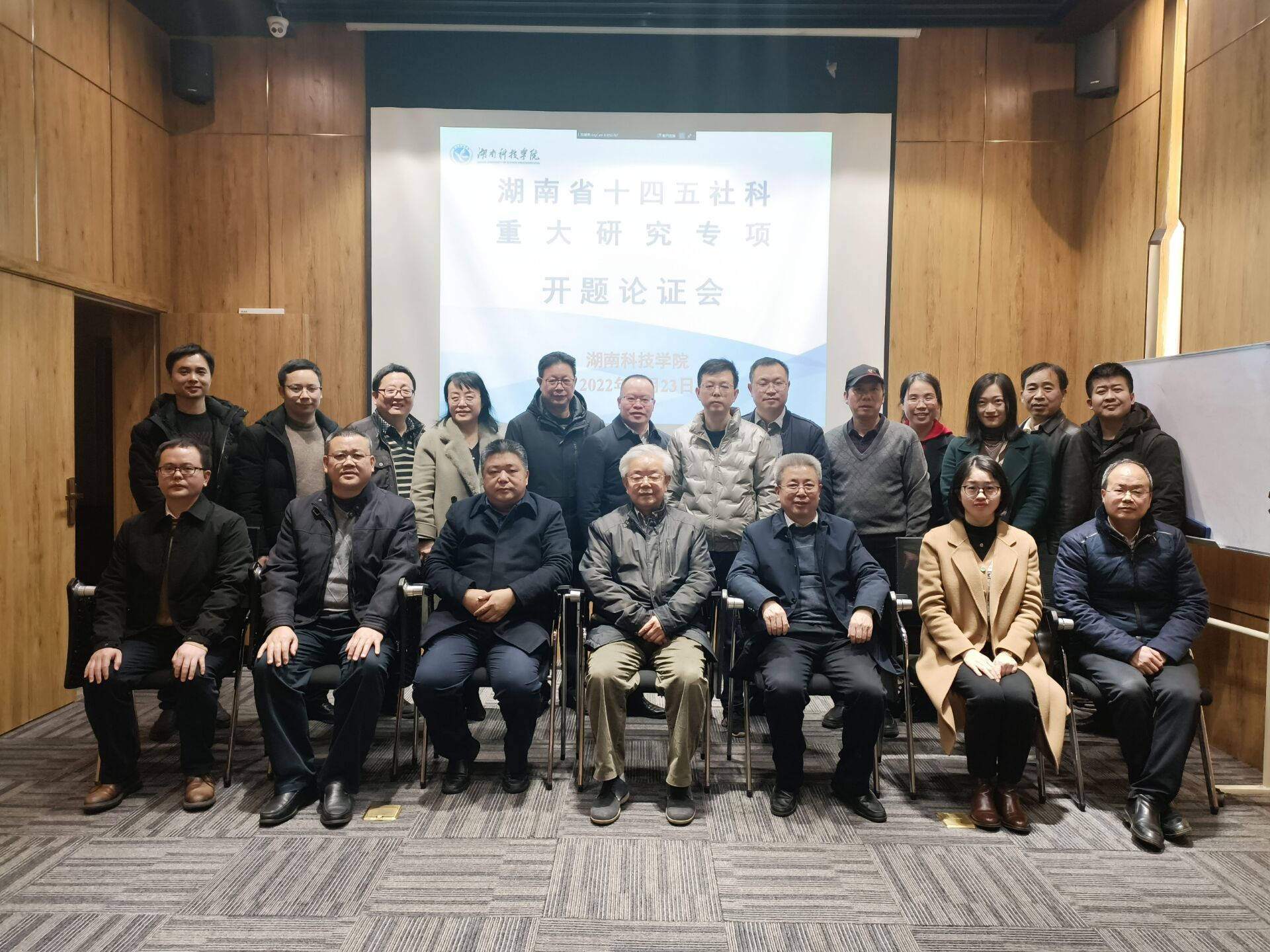 本网讯 1月23日,湖南省“十四五”时期社科重大学术和文化研究专项开题论证会在长沙举行。会上,对《李达专题研究》和《周敦颐专题研究》课题进行了专项开题论证。我校党委书记曾宝成,湖南省文史研究馆馆员、湖南省委宣传部原副部长、湖南师范大学教授郑佳明,我校党委委员、副校长何海,省委宣传部社科规划办主任陈湘文,湖南大学教授陈力祥,湖南理工学院教授鲁涛、省社科院副研究员张利文等专家出席。