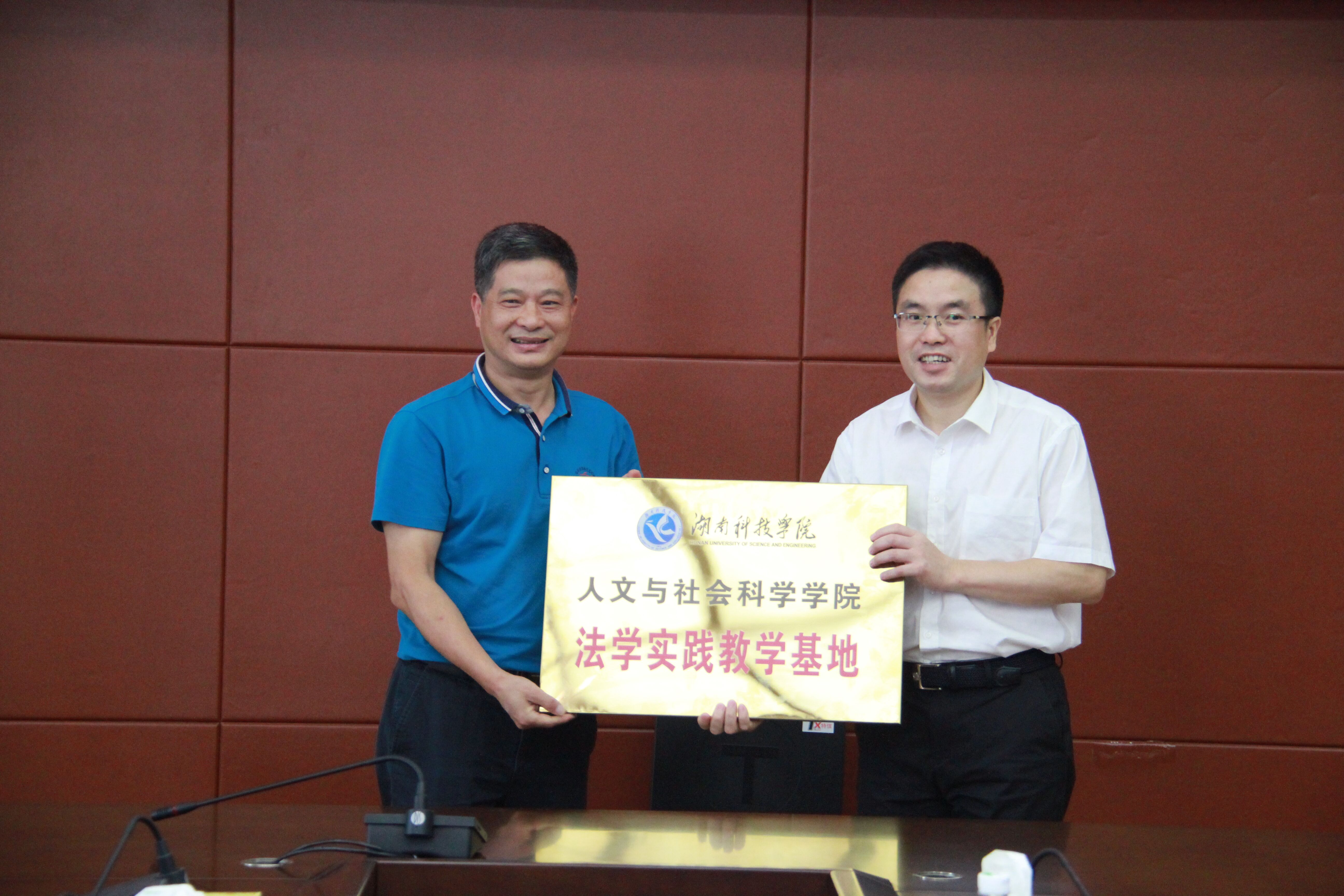 签约仪式上,潘雁飞与唐阳陵签订《新利·体育法学实践教学基地协议书》,唐艳明向唐阳陵授予“新利·体育人文与社会科学学院法学实践教学基地”牌匾。