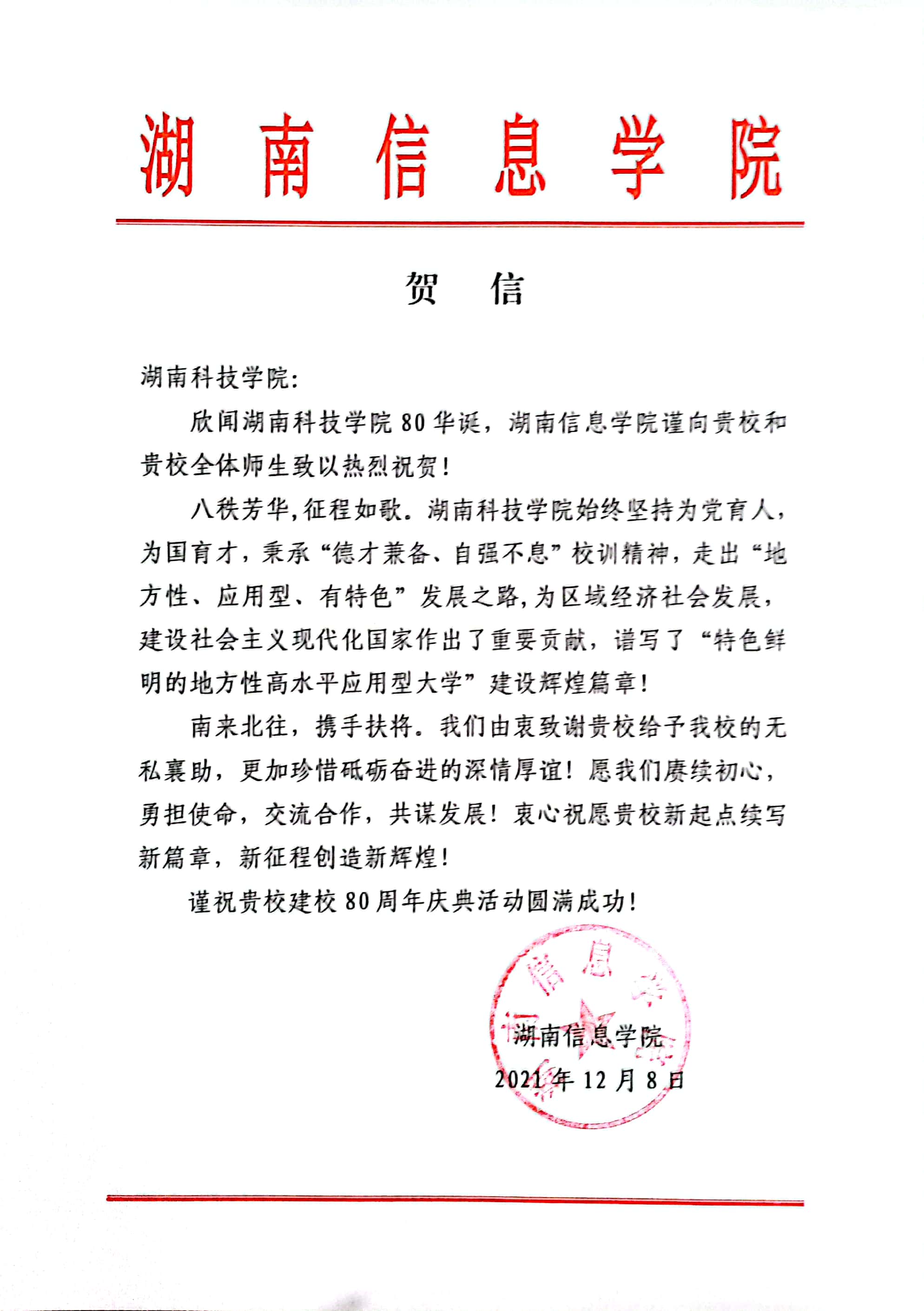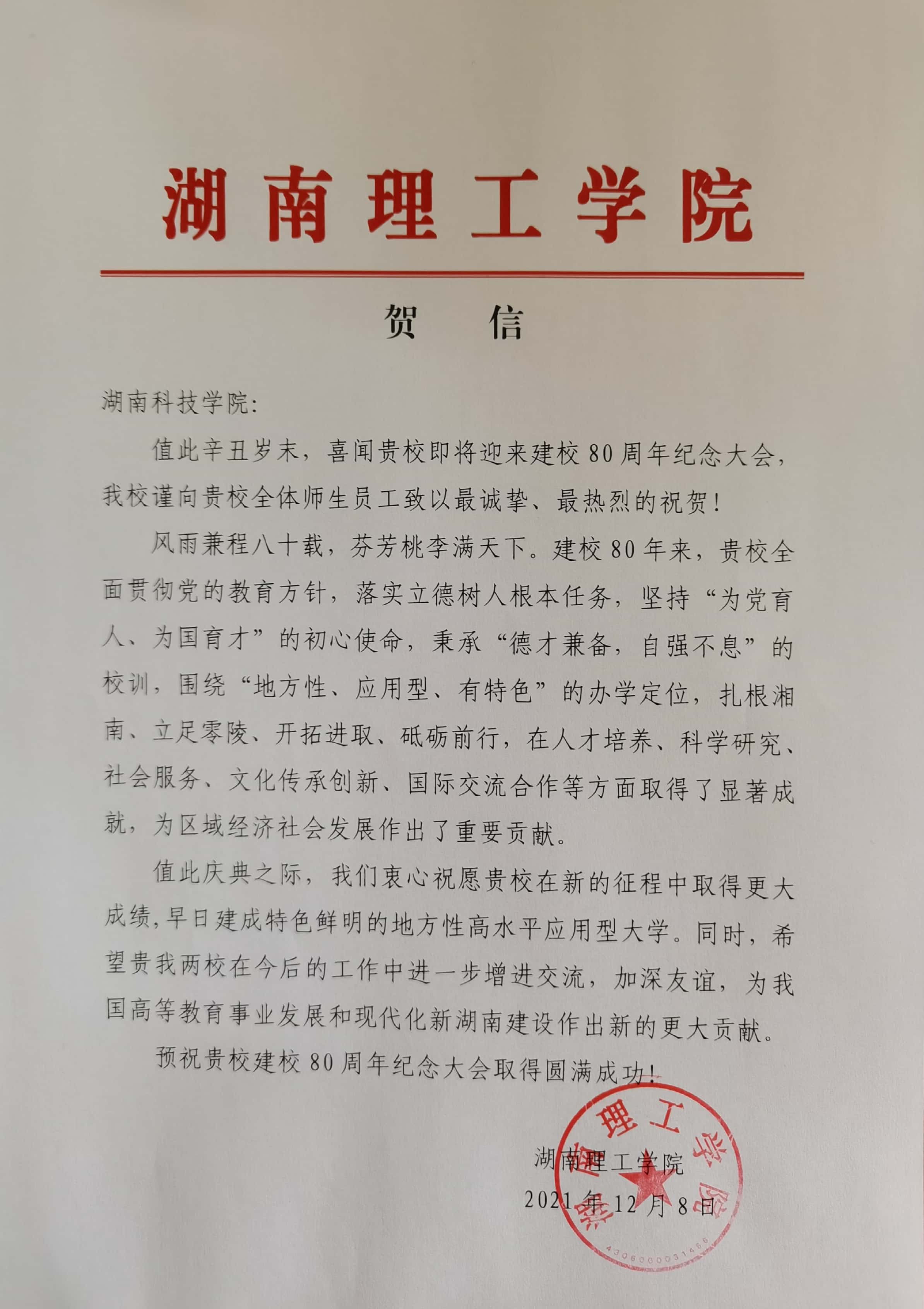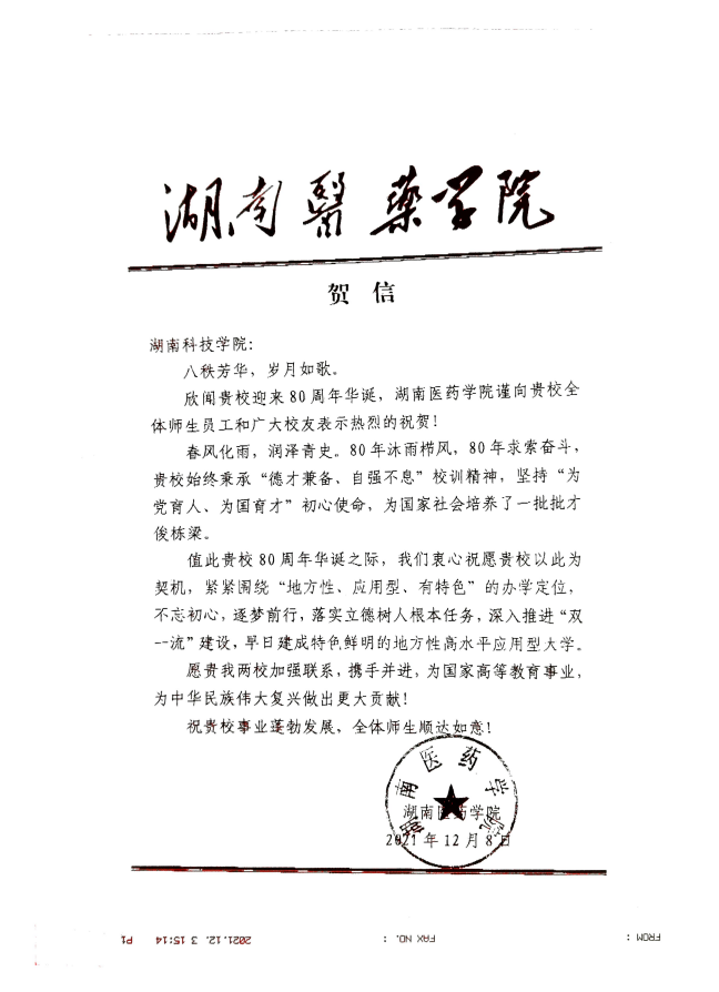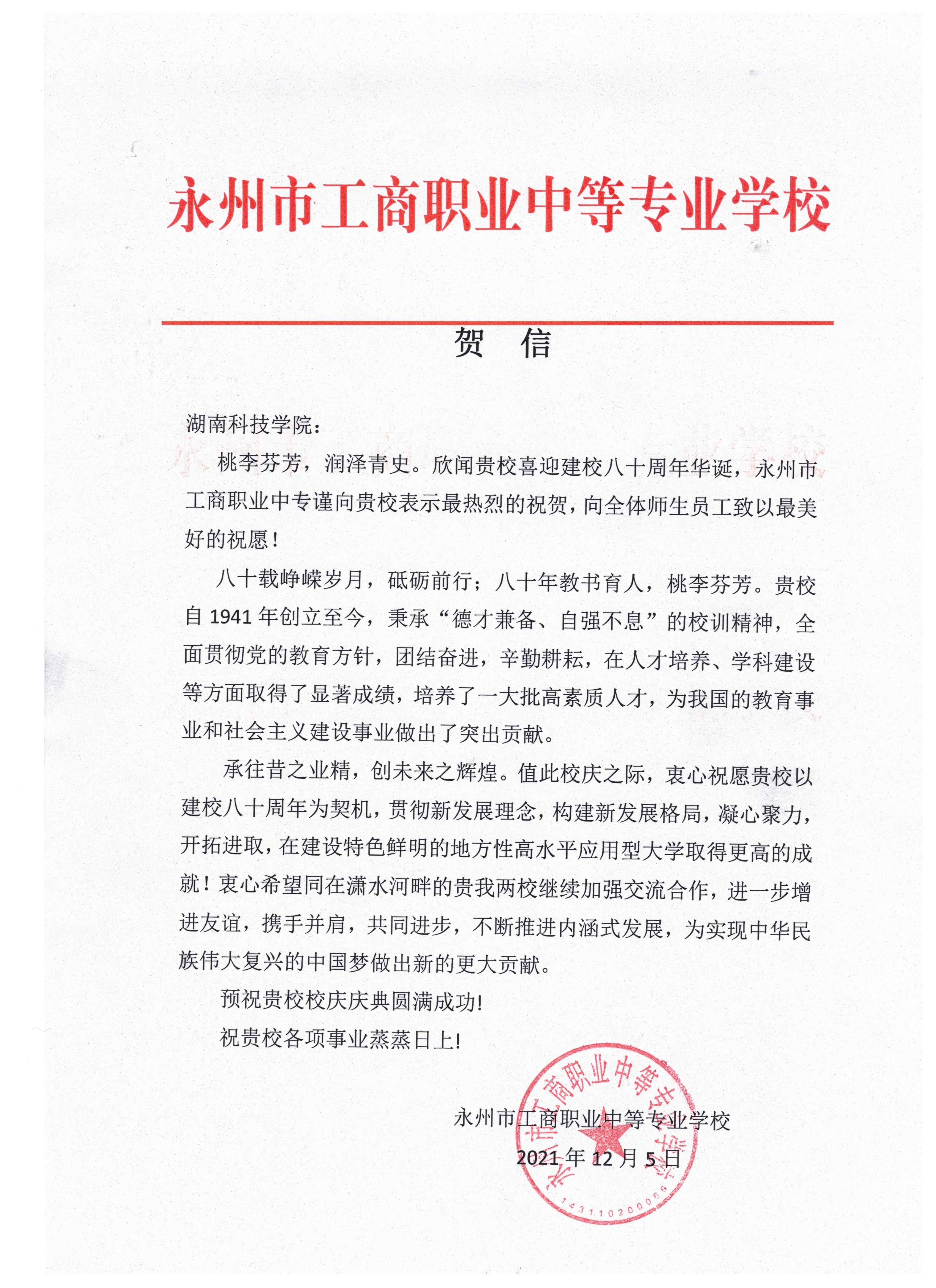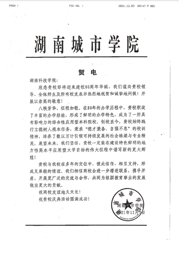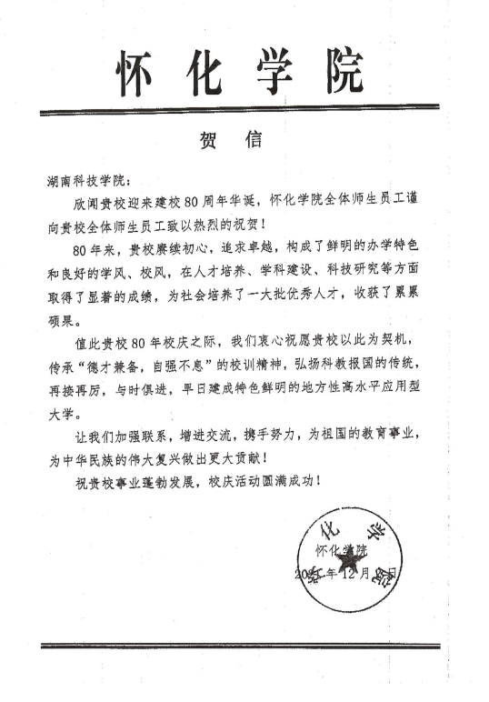 编者按:风雨兼程百十载,弦歌不辍奏华章。学校即将迎来80周年校庆,期间,学校收到大量单位、团体的贺信贺词贺电。在此对部分贺信做一集锦,以表感谢!(排序不分先后)