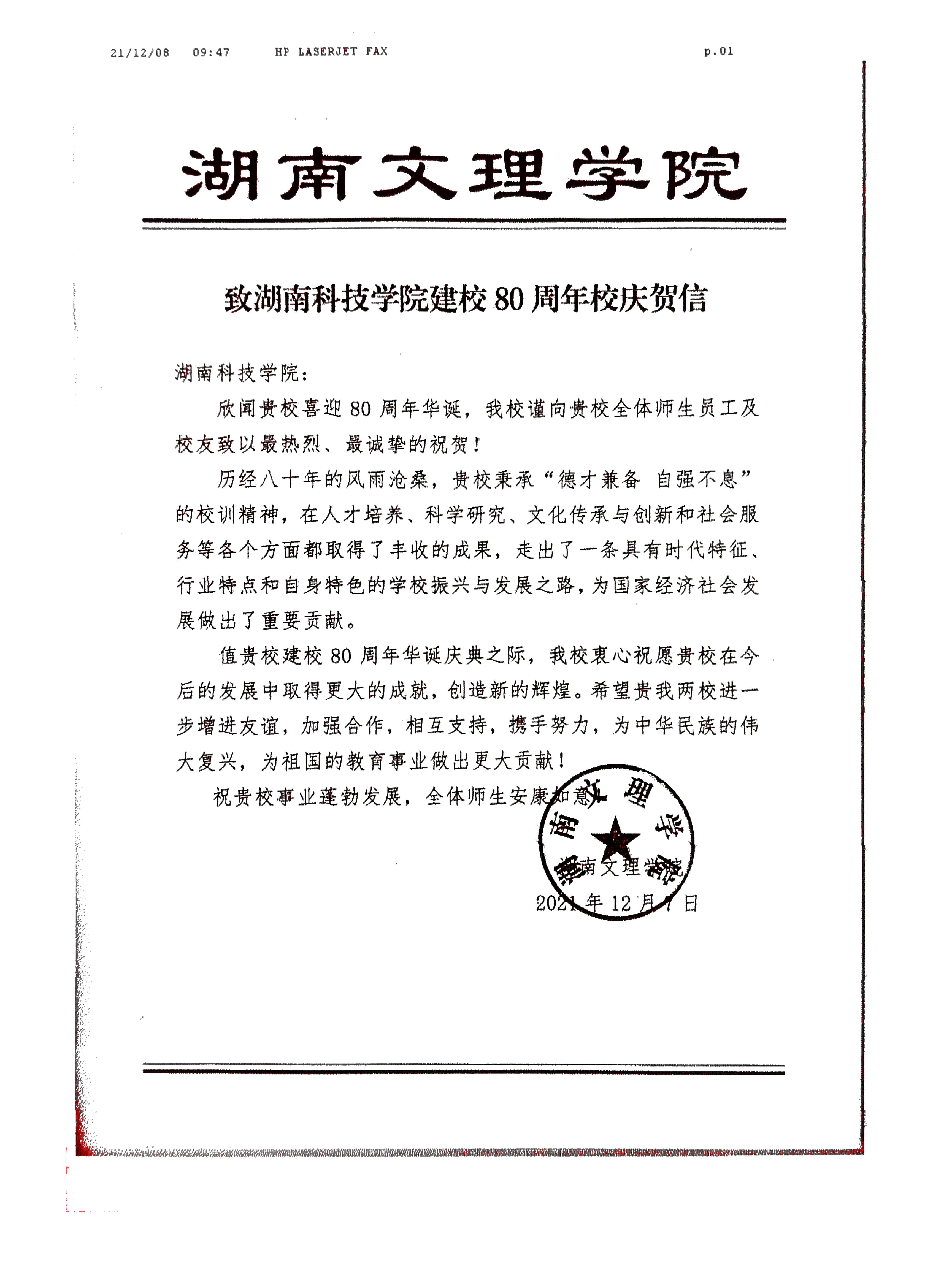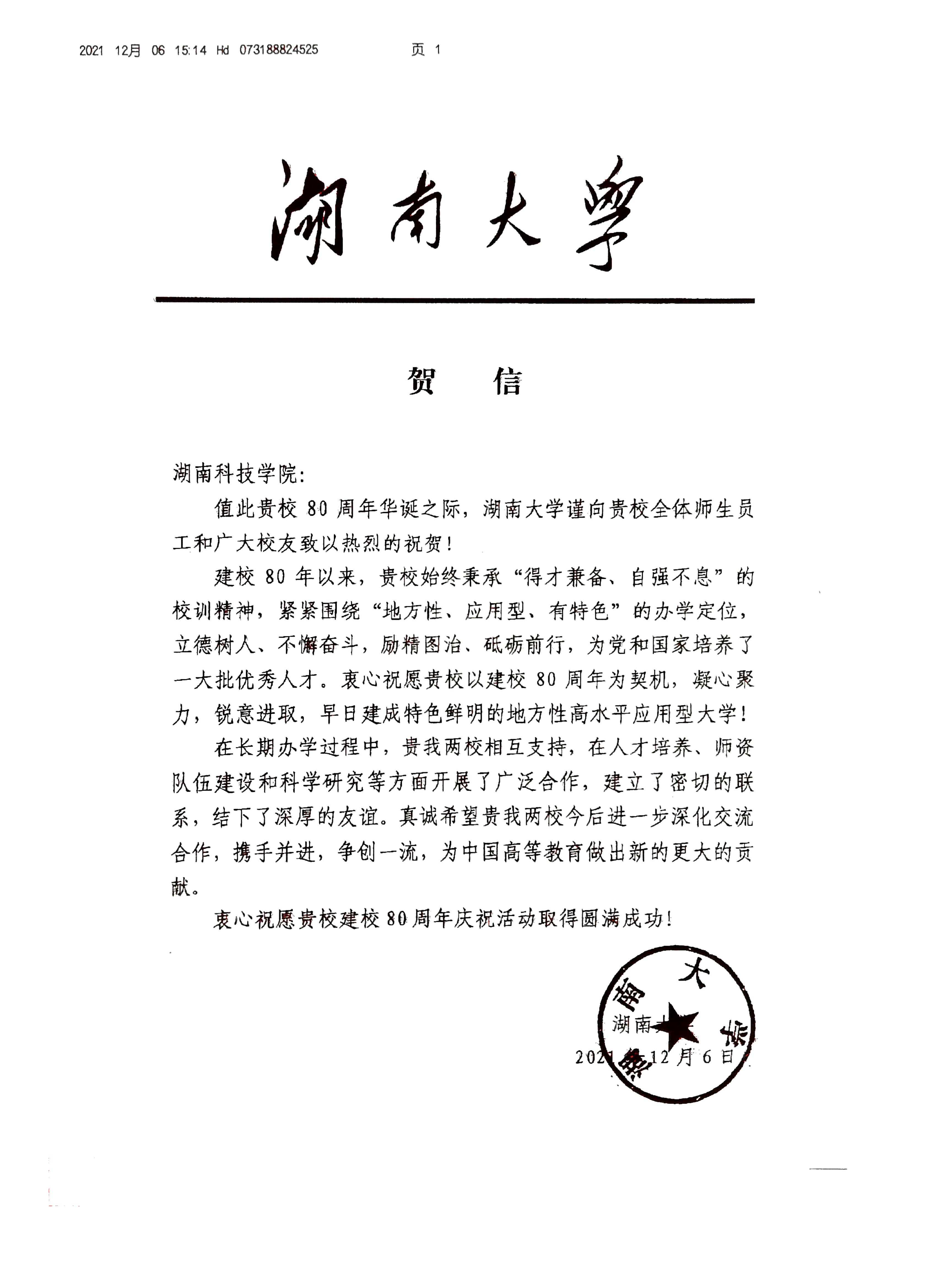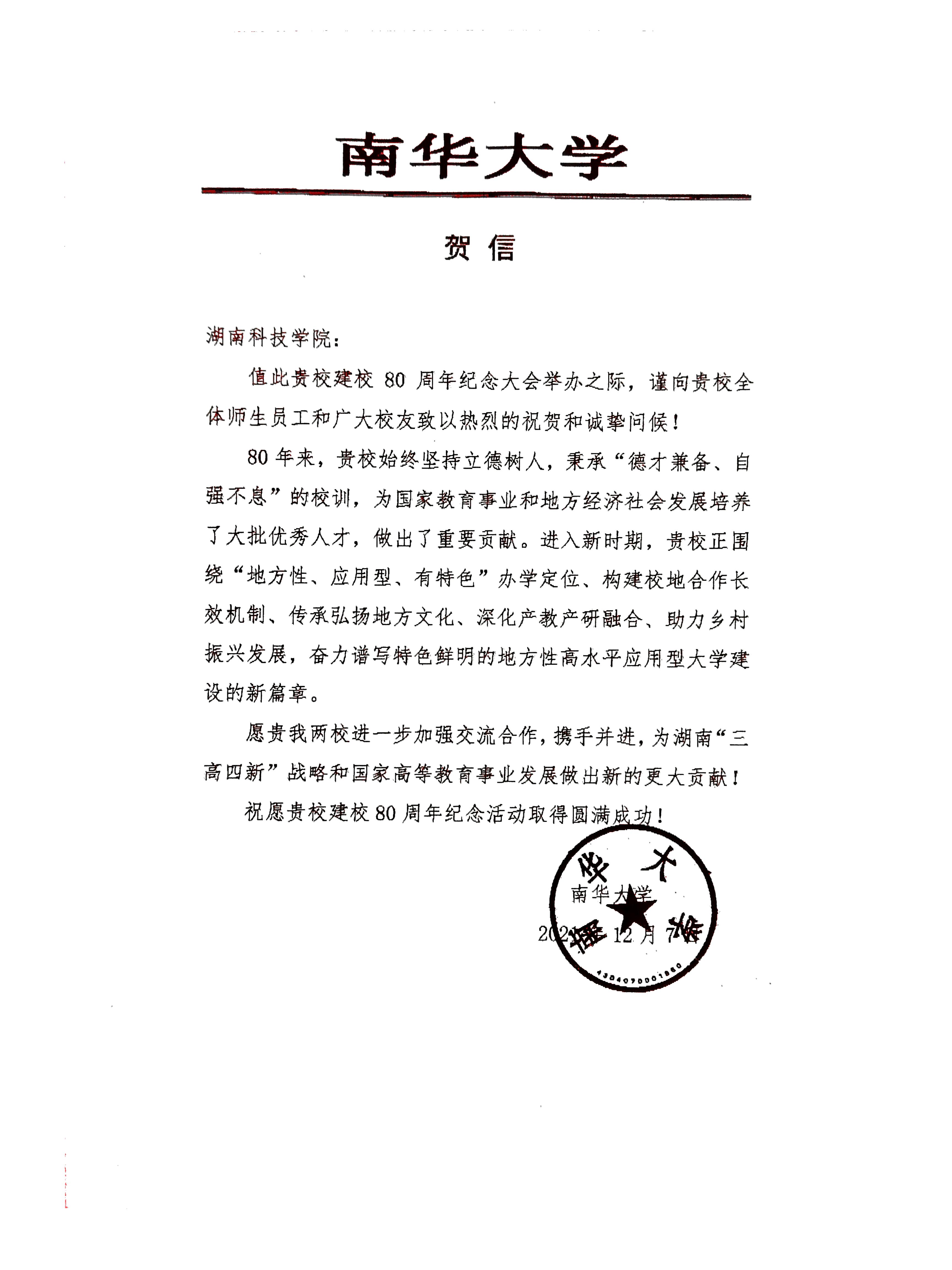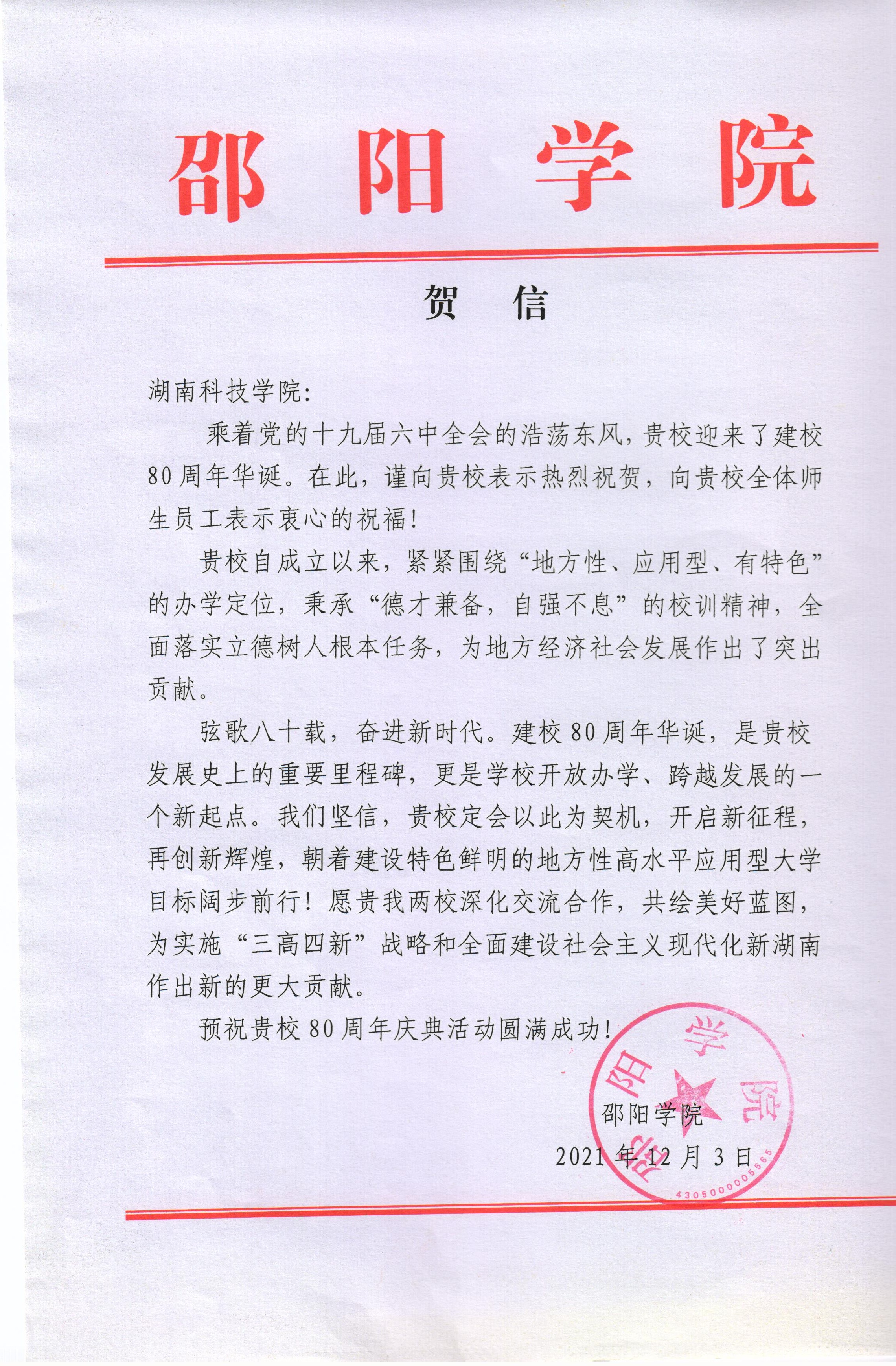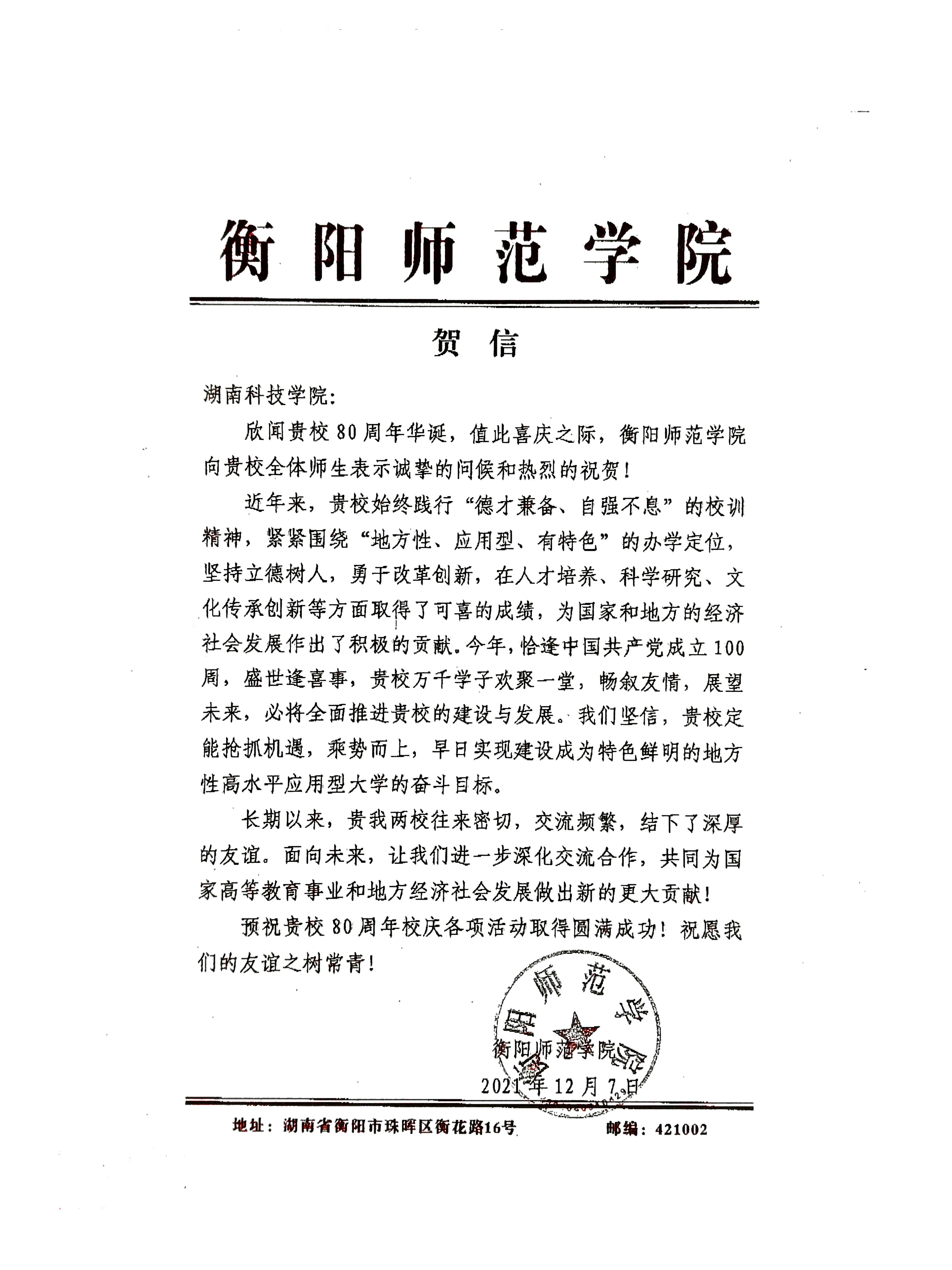 编者按:风雨兼程百十载,弦歌不辍奏华章。学校即将迎来80周年校庆,期间,学校收到大量单位、团体的贺信贺词贺电。在此对部分贺信做一集锦,以表感谢!(排序不分先后)