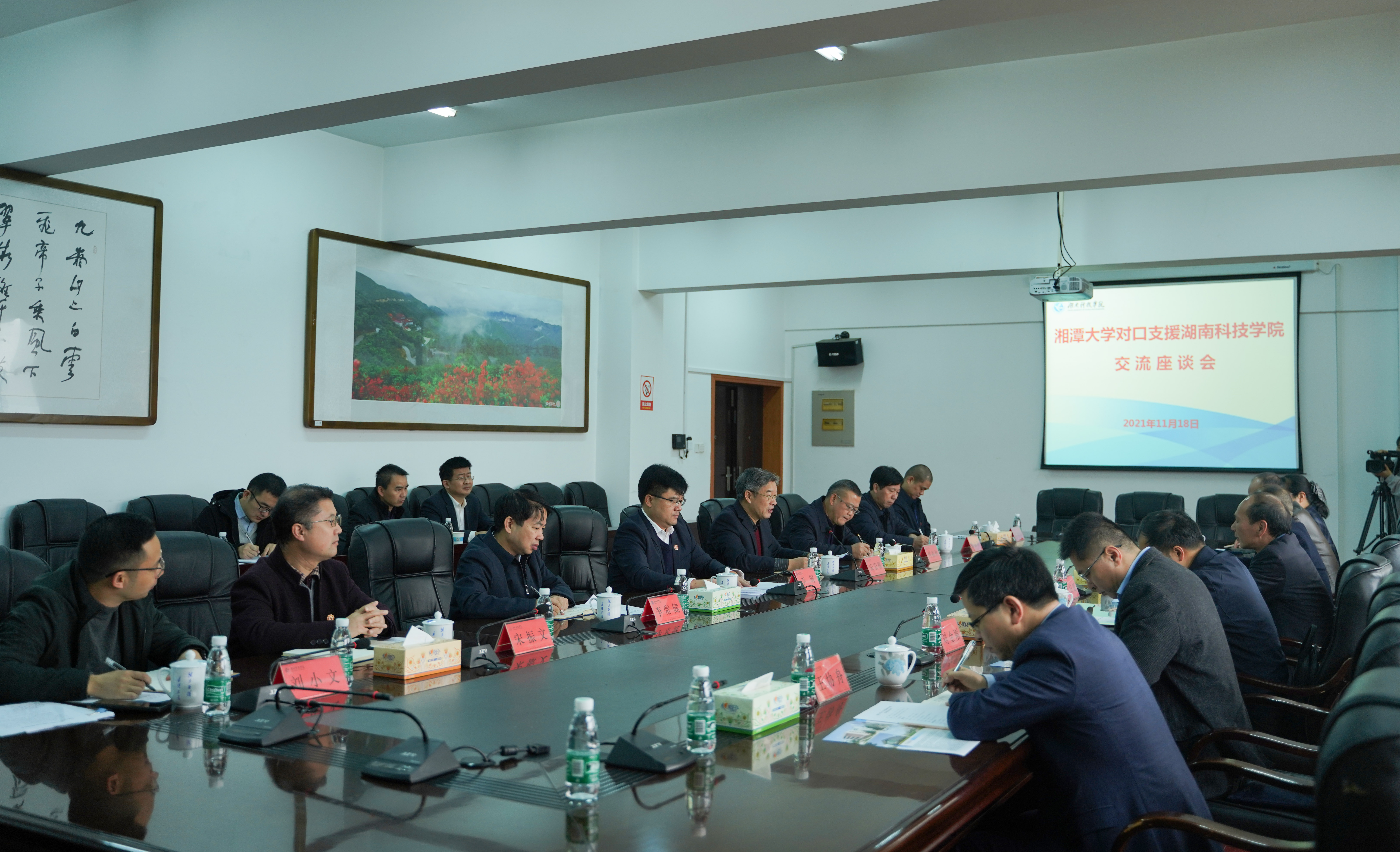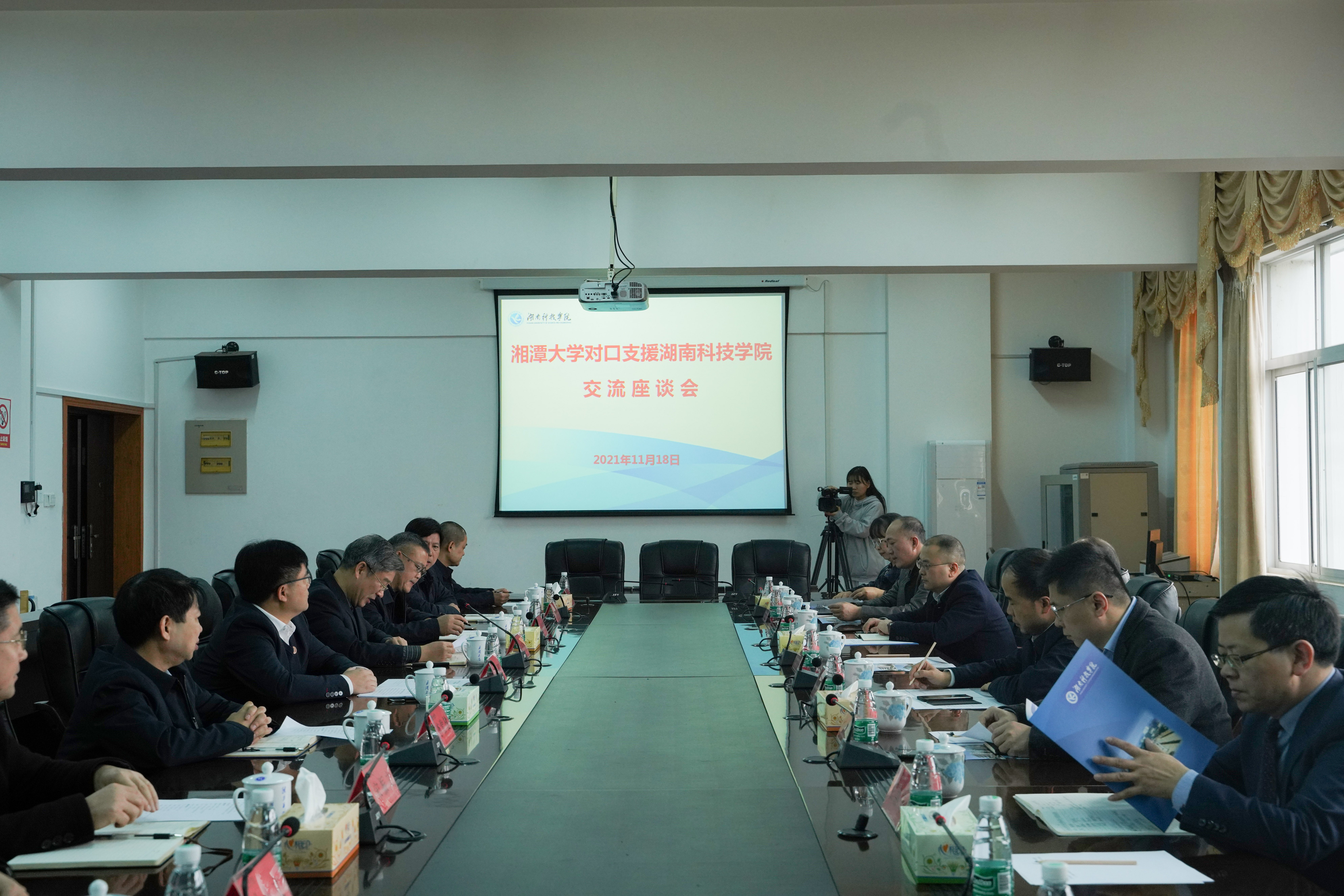 本网讯 为进一步加强两校间合作交流,切实落实《湘潭大学对口支援新利·体育合作协议》,11月18日上午,湘潭大学校长李伯超、副校长盛明科带队来我校开展对口支援活动。我校校长李钢,党委副书记宋宏福,副校长李常健、何福林及有关职能部门负责人出席座谈会。会议由宋宏福主持。