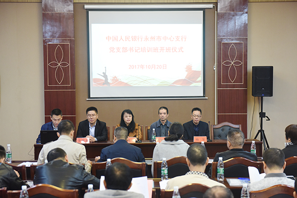 本网讯 为深入贯彻落实全面从严治党要求,进一步加强基层党组织建设,10月20日,正值党的十九大召开之际,我校为中国人民银行永州市中心支行举办了一期党支部书记专题培训班。该行机关党委书记、党委委员、工会主任雷树清,马克思主义学院院长廖雅琴等出席。