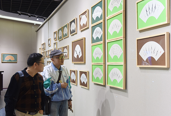 本次展览展出时间为10月11日至15日,共展出女书扇面作品一百一十余幅,其中八十余幅为装裱扇面作品,三十余把为形态各异的实物扇。本次展览基于扇子自古由今的变化而设定主题为“唯美”,将扇子日益突出的工艺性、装饰性与世界唯一的女性文字——女书结合展出。女书字体纤柔多姿、亭亭玉立、翔如水鸟,又融入刚强遒劲的甲骨文、金文和篆书,产生了一种拙朴中的女性美,令人耳目一新。女书与古老的扇面和千姿百态的扇子结合起来,美感十足,受到了观赏者的一致好评。