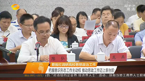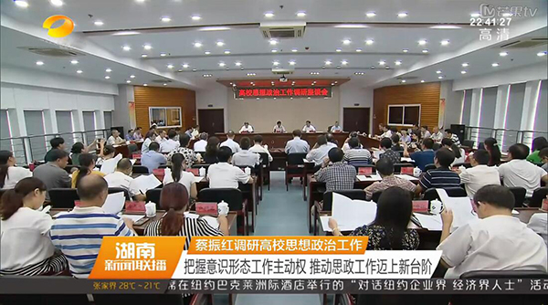 本网讯 9月21日下午,全省高校思想政治工作调研座谈会在长沙理工大学召开。省委常委、省委宣传部长蔡振红和全体与会代表深入课堂听课,长沙理工大学、新利·体育、中南大学、湖南大学、湖南师范大学、湖南第一师范学院6所高校党委书记、教师、辅导员、学生代表作了交流发言。蔡振红部长讲话强调,要进一步深入贯彻落实全国、全省高校思想政治工作会议精神,加强高校意识形态和思想政治工作,努力创新工作方法,确保高校思想政治工作始终沿着正确方向发展。