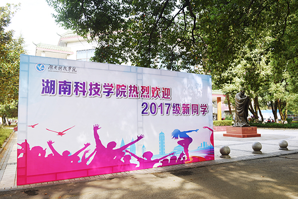 进入校园,喜庆的迎新展板映入眼前。