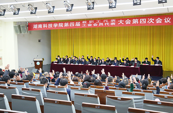 在激昂的校歌声中,第四届教职工代表工会会员代表大会第四次会议胜利闭幕。