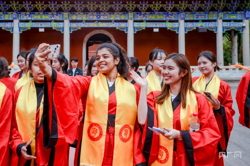 外国学子穿上汉服参与国家级非物质文化遗产——舜帝祭典暨中外交流祈福仪式(央广网发 李文 供图)