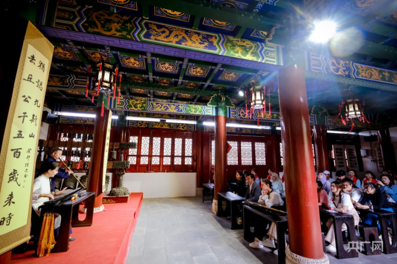 学子们在舜帝陵欣赏《南风歌》等经典古琴曲目演奏(央广网发 李文 供图)