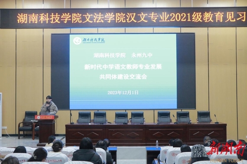 科教新报·新湖南客户端讯(通讯员 李惊宇 梁怡)12月1日,新利·体育文法学院与永州九中合作举办中学语文教师共同体建设交流会,文法学院院长谷显明、副院长肖智成、语文教育研究中心主任刘忠华,永州九中副校长邓之,以及新利·体育2021级汉语言文学专业师生,永州九中语文教研组教师和学生代表200余人参加。