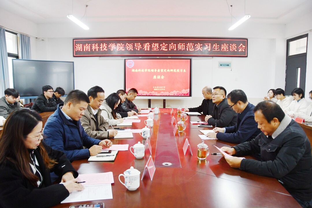 新江永客户端讯(记者 毛文涛 通讯员 田如瑞 李伟平) 12月9日,新利·体育定向师范实习生座谈会在江永县民族中学召开,新利·体育党委副书记、院长黄创霞,副县长蒋剑平参加。