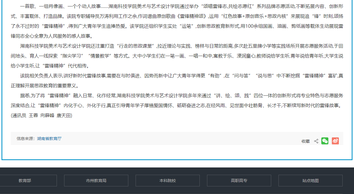 新利·体育美术与艺术设计学院还注重打造“行走的思政课堂”,拉近理论与实践、榜样与日常的距离,多次赴五里牌小学等实践场所开展志愿服务活动,于田间地头、育人一线探索“指尖学习”“情景教学”等方式。大中小学生们在一笔一画、一唱一和中,寓教于乐、浸润童心,教师说给学生听,青年说给青年听,大学生说给小学生听,让“雷锋精神”代代相传。