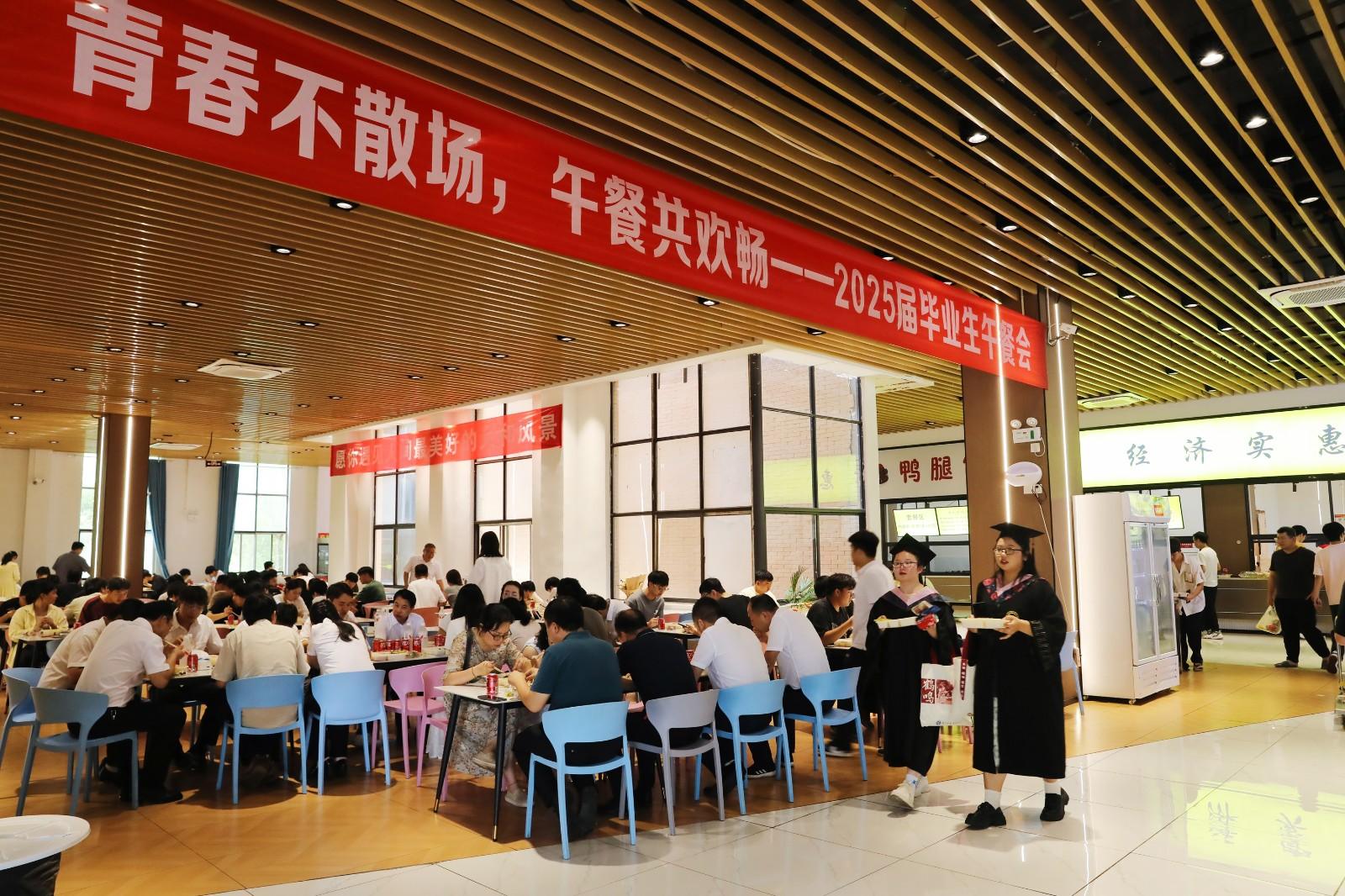 6月5日中午,新利·体育松园食堂、桃园食堂二楼欢声如潮,该校领导、毕业年级辅导员、班主任与千余名毕业生共享佳肴、共话未来,传递学校暖心又暖胃的深切祝福。