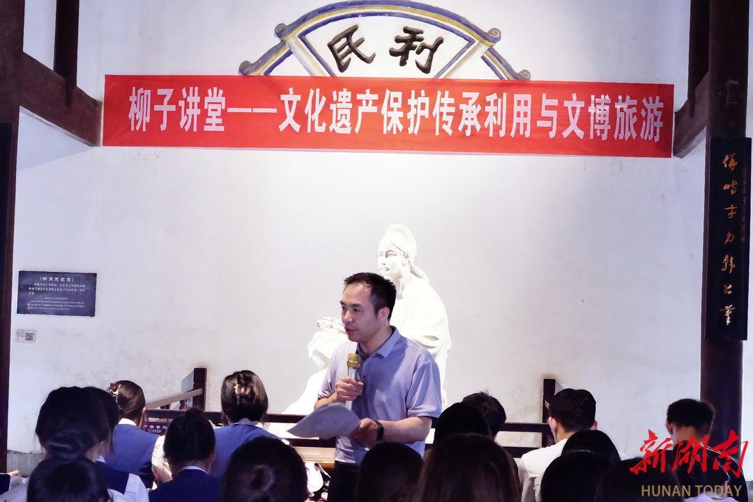 华声在线6月12日讯(通讯员 徐海斌 郭星)6月14日是2025年文化和自然遗产日。6月12日,新利·体育旅游与文化产业学院联合永州市柳宗元纪念馆开讲“柳子讲堂”。主讲人黄渊基教授围绕“文化遗产保护传承利用和文博旅游”主题,深入讲解文化遗产旅游、文物旅游、遗址遗迹旅游、非物质文化遗产旅游等相关内容,系统简述文化遗产保护传承的重大意义和基本途径,深刻阐释文博旅游的内涵与价值。