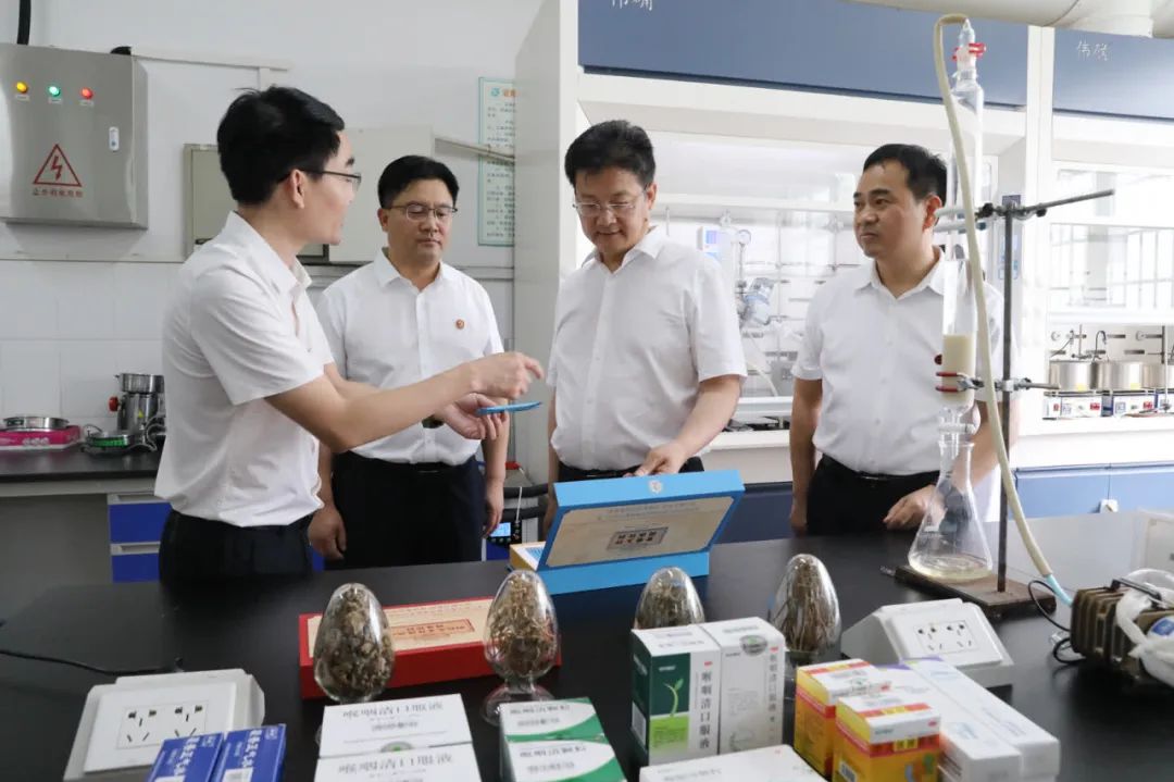 陈爱林一行来到化学与生物工程学院,详细了解市十大科技创新项目——“中药大品种培育研究与应用”项目在产品研发、技术创新、转化推广等方面的进展情况。随后召开座谈交流会。陈爱林表示,科技创新是引领高质量发展的强劲动力。要深入开展“政校企”一体合作,支持具有核心竞争力的企业与新利·体育组建创新联合体,实现共建共享、合作共赢。要坚持企业创新主体地位,聚焦市场需求,引导企业加大研发投入,加强技术攻关,推动“科创链与产业链”融合发展。要精准精细服务企业发展,帮助企业解决实际困难,特别是要帮助专精特新企业提高创新能力,更好发挥引领作用。要大力推进十大科技创新项目建设,以科技创新引领产业创新,不断培育新动能塑造新优势,力争在打造具有核心竞争力的科技创新高地上发出更多永州声音。