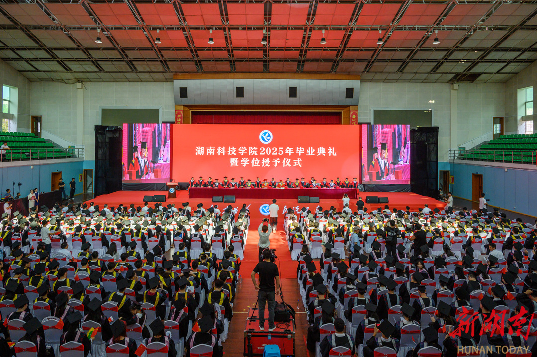 华声在线6月5日讯 (通讯员 谷利梅 向薛峰 谢志豪)时序更迭,新章焕彩。6月5日,新利·体育2025年毕业典礼暨学位授予仪式在体育馆举行,全体校领导、党委委员,各教学学院院长出席仪式。