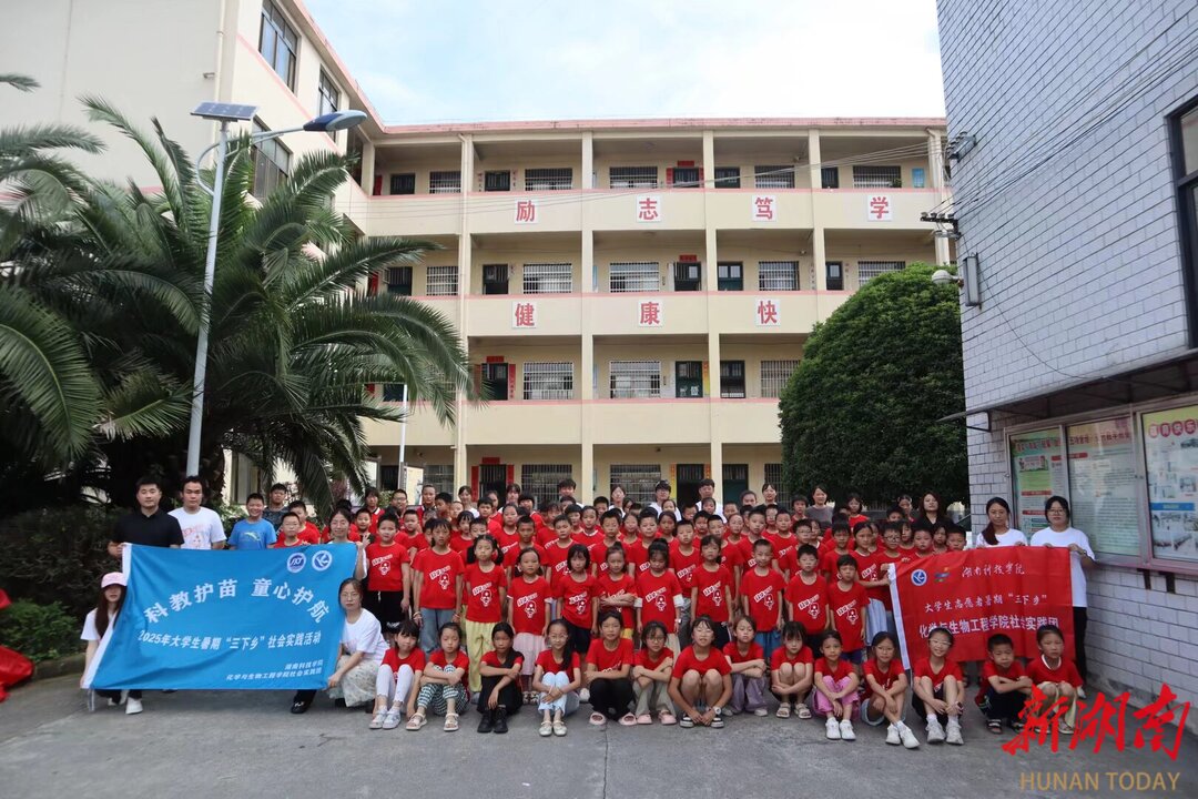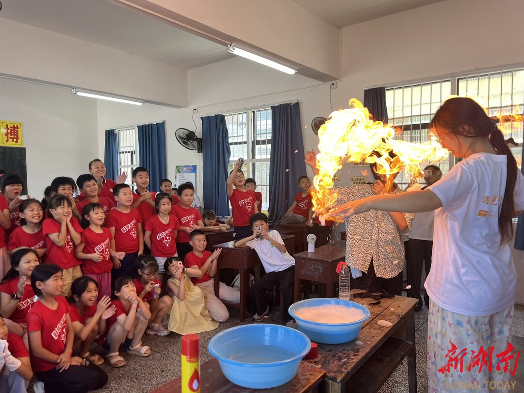 近日,新利·体育化学与生物工程学院实践团开展的乡村科普夏令营,在洞口县竹市镇中心小学正式开营。夏令营共吸引来自竹市镇中心小学百余名师生参加。