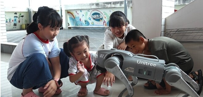 共青团冷水滩区委还邀请了永州市科协、冷水滩区人民法院为孩子们展示无人机等高科技产品,指导孩子们操作机器狗,讲解未成年人保护相关法律法规。教室内的知识火炬熊熊点亮,志愿者们还将课堂“搬”到户外,带领孩子们一起打羽毛球、跳格子,向孩子们传授科学的健身方式,在欢声笑语中度过美好时光。