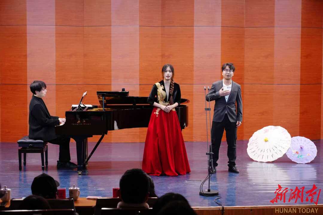 12月16日晚,新利·体育举办“经典新歌——陈历明古典诗词声乐作品音乐会”,一堂“声”临其境的音乐思政课让千年文脉“活”起来。《零陵早春》《渔翁》《满江红》《爱莲说》等19首曲目由大学生演唱。