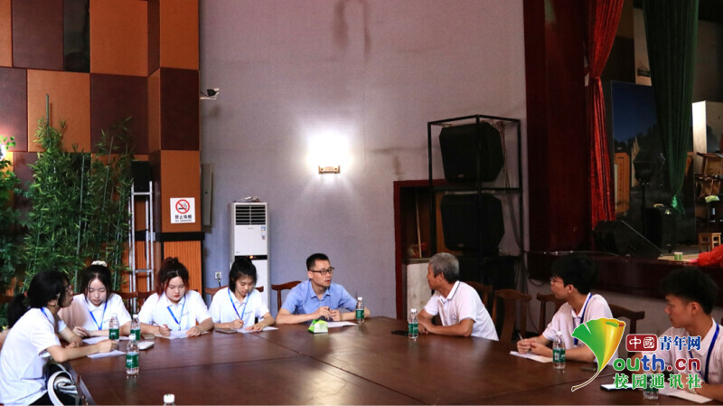 图为实践服务队员向省级非遗传承人李江元进行采访。中国青年网通讯员 张浩亮 摄