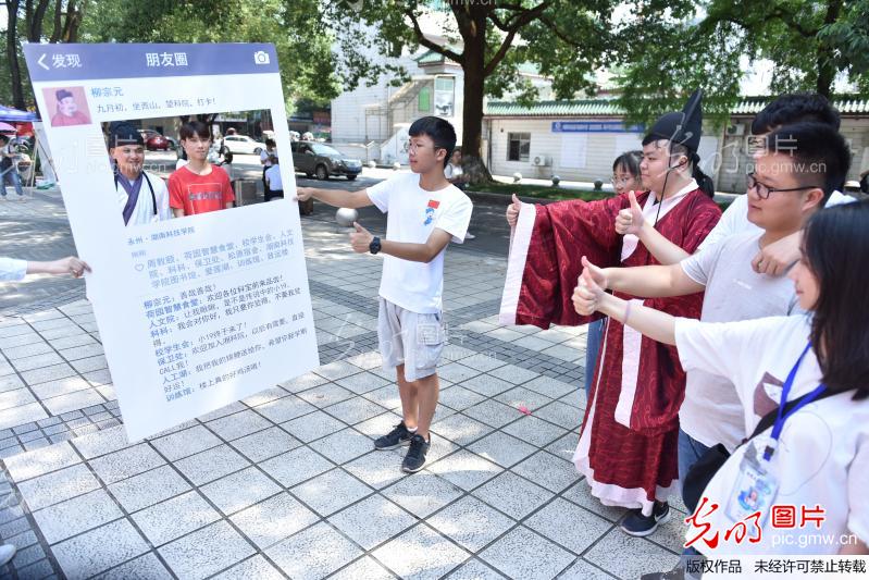 2019年9月7日,新利·体育东门,同学们在给“柳宗元”迎新打卡的朋友圈点赞。