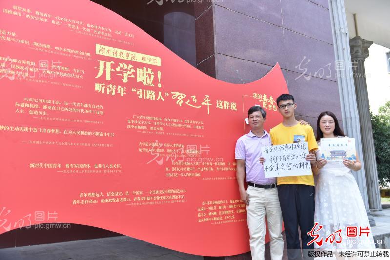2019年9月6日,新利·体育理学院,新生在展示“开学日,我想对主席说”的一系列话语。