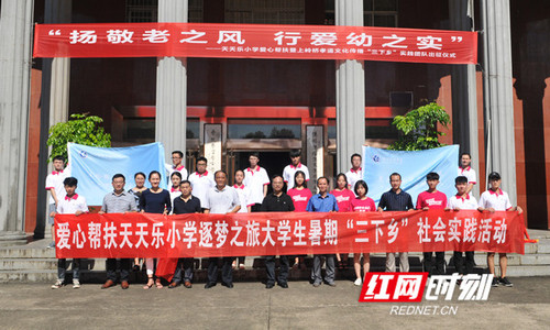 最后,陈弘为天天乐小学爱心帮扶和上岭桥镇孝道文化传播“三下乡”社会实践团队分别授旗,预祝“三下乡”实践活动圆满进行并取得优秀成果。