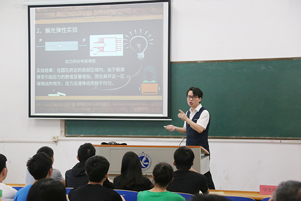 比赛分理工科组和文科组,两组同时进行。在比赛过程中,各位参赛教师激情饱满,热情四溢,教学风格各具特色。比赛最终结果由现场授课与教学文档两部分综合评比产生。在现场授课环节比拼中,罗雄文老师以“土木工程材料”为课题授课,用赵州桥的例子引出学生对桥梁构造的探讨,借粉笔、弹簧等实物举例,结合示意图让学生更清晰地了解钢筋与混泥土的协同作用。李超老师从打开口腔、力量集中、声挂前腭三点,结合绕口令、视频和例子具体分析了播音中咬字器官互相配合的要领,以良好的教学仪态、诙谐幽默的教学语言为学生们讲解了《发声与播音基础》的课程内容,课堂上充满了欢声笑语。