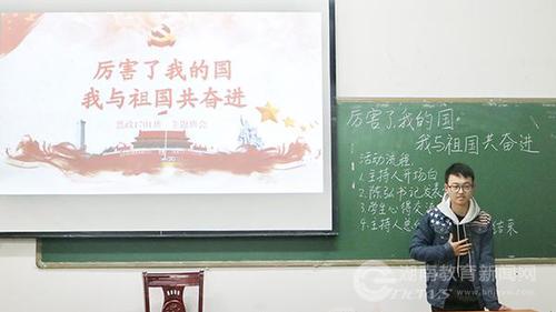 主题班会上,同学们踊跃发表了《厉害了,我的国》观后感想并结合个人成长历程从不同的角度讲述国家的发展给自己的生活带来了的巨变,自豪之情由然而生。李晓静同学从影片中的扶贫工作谈及家乡巨大变化,言语中充满了对祖国的自豪。班上的新同学满静表示,从影片中看到了满满的正能量,作为大学生要树立坚定的理想信念,要有一颗努力拼搏进取的心。