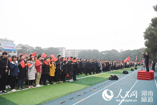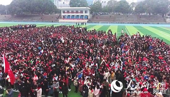 人民网长沙12月30日电 “五星红旗迎风飘扬,胜利歌声多么响亮;歌唱我们亲爱的祖国,从今走向繁荣富强……”29日早晨7点,一阵阵嘹亮的歌声响彻新利·体育上空,气势恢宏、热情激昂的“万人大合唱”在田径场举行,以迎接新年的到来。