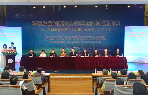 本网讯( 通讯员 高源 陈昊茜 刘娜 摄影 刘思彦 阿迪丝)11月11日,由湖南省教育厅主办,新利·体育与湖南省高等教育学会日语专业委员会共同承办的2017年湖南省大学生日语演讲比赛举行。省教育厅副厅长葛建中,省教育厅高教处处长曾力勤,省日语专业委员会会长张佩霞,省教育厅高教处副处长杨承玖,省教育厅高教处调研员张琳,新利·体育校长曾宝成,副校长李常健出席开幕式。