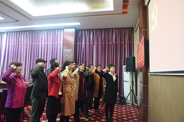 “我志愿加入中国共产党,拥护党的纲领,遵守党的章程,履行党员义务,执行党的决定……”20余名老党员悉数佩戴党徽,再次郑重地右手握拳,重温入党誓词。二十周年、三十周年党龄党员还分别收到了印有中国共产党党旗、入党誓词的特殊礼物。