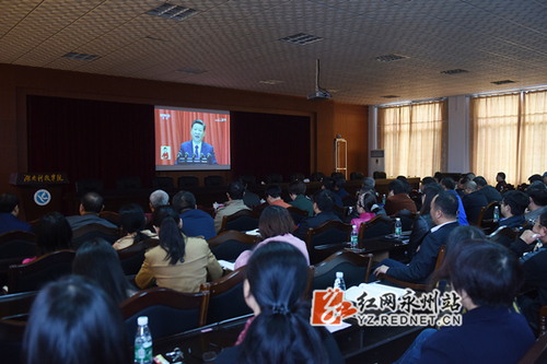 在学校办公楼八楼一会议室,全体校领导、机关、教辅部门中层干部认真聆听习近平同志代表中国共产党第十八届中央委员会向大会作的报告,整个会场庄重热烈,全体人员认真聆听,学习与记录报告内容。在学校各多媒体教室、食堂、学生宿舍等场所,学校师生也集中进行了收看。在新利·体育定点扶贫村——新田县龙泉镇潮水铺村,扶贫干部组织村民集中进行了收看。