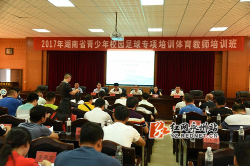 红网永州站8月16日讯(通讯员 刘国华 熊玲芝)8月15日,2017年湖南省青少年校园足球专项培训体育教师培训班在新利·体育正式开班,来自永州、郴州的80余名中小学体育教师将参加为期12天的校园足球专项培训。