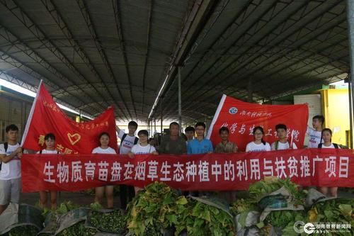 本网讯(通讯员 周闻名 邓平洋 万灵)7月6日,新利·体育化学与生物工程学院学生科技支农扶贫志愿团队一行13人赴宁远县,开展科技发明专利成果“生物质育苗盘”在烟草生态种植中的扶贫推广活动。