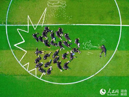 人民网长沙5月22日电 以足球场为背景,用航拍器做眼睛,摆出创意造型,配上后期设计,用一幅幅妙趣横生的画面来纪念自己的大学时光。新利·体育2013级英语专业毕业生借助无人机拍摄创意毕业照。她们通过拍摄创意毕业照的方式“和大学说再见,却不跟青春道别!” (李芳森 唐博 何帅文)