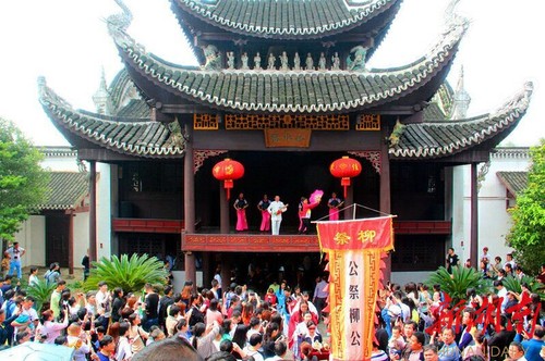 柳宗元是唐代著名文学家、哲学家、思想家,山西河东(今运城)人,唐宋八大家之一。从公元805年到815年,柳宗元从长安贬谪永州任司马10年。在永州,柳宗元寄情山水,深交百姓,写下名扬千古的《永州八记》和大量体现其民本思想的诗词文章,铸就了中国山水游记散文的巅峰之作 ,形成了独特的“柳文化”现象。清明祭柳成为永州多年来的文化盛事。今年由永州柳学会主办的清明祭柳,主祭人恭读祭文、焚烧帛书后,社会各界人士向柳子敬献了花篮,新利·体育、中小学师生吟诵柳诗、唱读柳文,讴歌和缅怀一代宗师柳宗元,群众自发地开展了舞龙、耍狮、文艺表演等民俗、文艺活动。