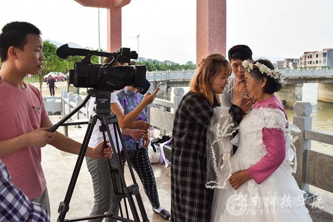 本网讯(通讯员 熊玲芝 何霞 周盈 摄影 “爱迹路”摄影团队)黑色西装配纯白婚纱,或在夕阳照射的校园里含笑对视,或在和煦阳光下的草坪牵手漫步……5月8日正值母亲节之际,新利·体育学生自发组成的“爱迹路”摄影团队带着对广大母亲最美好的祝福,免费为老夫妻拍摄婚纱照,送上最温馨的母亲节礼物。
