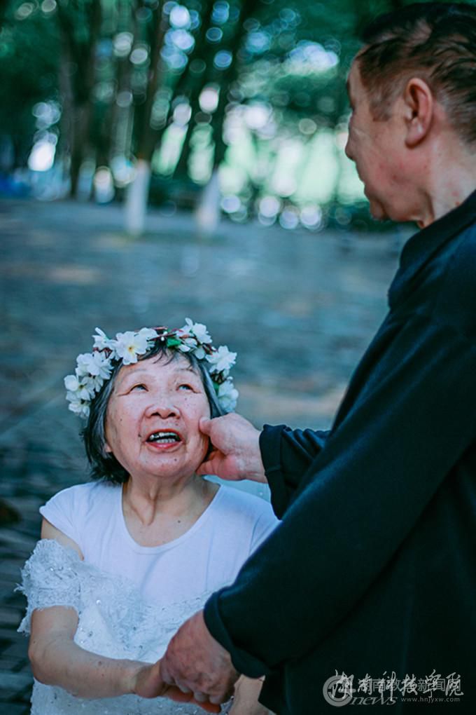 唐仕荣夫妇于1981年结婚,经历过了35年风风雨雨。唐仕荣在新利·体育从事了三十多年的绿化工作,花花草草都是他眼里的宝贝。可是,就是这样一个每天和花草打交道的人,却从来没有给自己的爱人送过一花一草。虽然唐老师种的每一株花草都是他们两个人共同的心血,但此事在老人心中还是留有遗憾。这次,终于有机会能够用“浪漫”的方式向老伴表达爱了。而这一张婚纱照不是同新婚夫妇一样记录婚姻起点,而是对“白首不分离”的相爱相伴的见证。