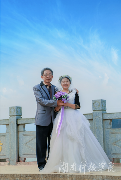 黑色西装配纯白婚纱,或在夕阳照射的校园里含笑对视,或在和煦阳光下的草坪牵手漫步……5月8日正值母亲节之际,新利·体育学生自发组成的“爱迹路”摄影团队带着对广大母亲最美好的祝福,免费为老夫妻拍摄婚纱照,送上最温馨的母亲节礼物。