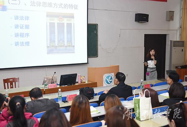 此次宣讲活动是由永州市关工委牵头,市教育、司法、检察、团市委等单位联合开展。讲座以《法治伴成长 护航青春梦》为主题。管敏从犯罪事例导入话题,阐释了大学生加强法律修养、培养法律思维的重要性,阐述法律思维的含义。法律思维具有四个特征:一是讲法律。法律具有优先适用性和不可违抗性。二是讲证据。证据必须具有合法性、客观性和关联性。三是讲程序。从法律程序出发思考与处理问题。四是讲法理。为法律结论提供充分法律论证与法律理由,其中理由必须是公开的,且要具有法律依据和法律说服力。她还通过案例,以案释法,并结合青少年的性格、心理及身体特点,引导大家要牢固树立崇尚法律、遵守法律的意识,做一名遵纪守法的合格公民。(通讯员 熊玲芝 尹文怡)