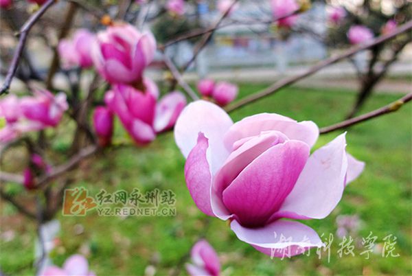 紫玉兰缀满枝头,雍荣华贵又不失端庄大方。